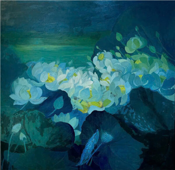 Ba nữ nghệ sĩ thuộc ba thế hệ như ba dòng chảy cùng gặp gỡ, hợp lưu tại triển lãm lần này. Dòng chảy của Hoàng Hương Giang tràn đầy xúc cảm qua những bức tranh sen tươi mới nồng nàn, thấm đượm sự bay bổng, nên thơ trong các ý niệm về cuộc đời.