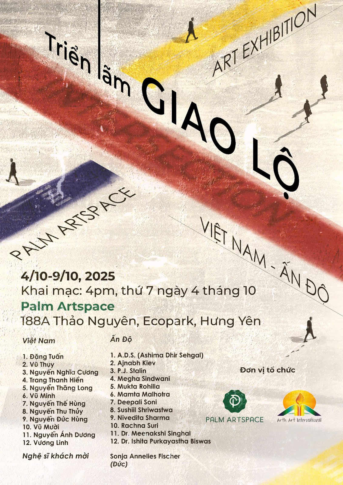 Triển lãm “Giao lộ”, diễn ra từ 04 đến 09/10/2025 tại Palm Artspace (Ecopark, Hưng Yên), mở ra cuộc gặp gỡ giữa nghệ sĩ Việt Nam và Ấn Độ, nơi hội tụ của hai nền văn hóa lâu đời, cùng đối thoại qua ngôn ngữ chung của nghệ thuật.
