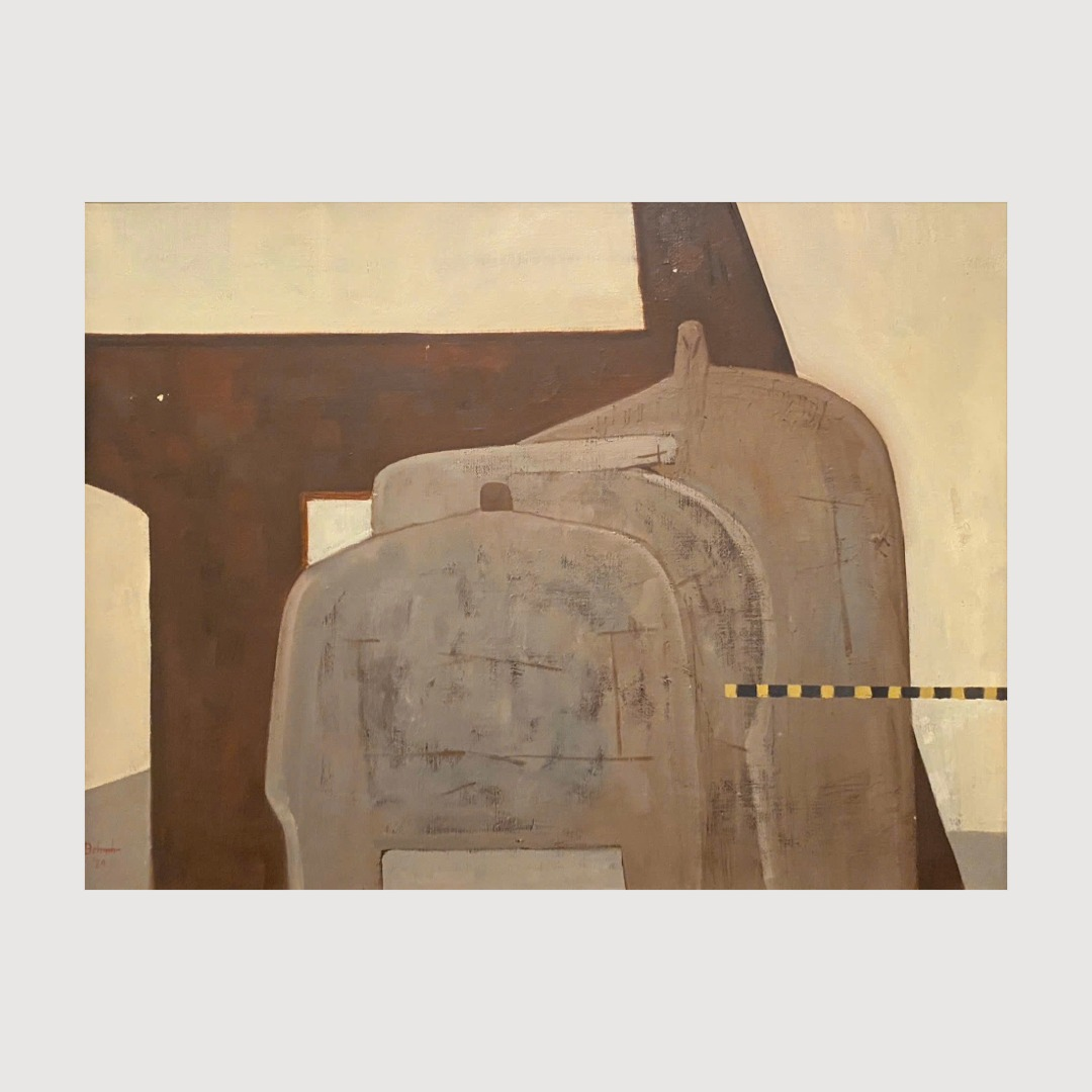 Tác phẩm trong series sơn dầu “Người trong đô thị” của Hoạ sĩ Đan Quốc Chính, khắc họa những con người trong thành phố phát triển dần trở nên “bê tông hóa”. Nguồn: The Muse Artspace