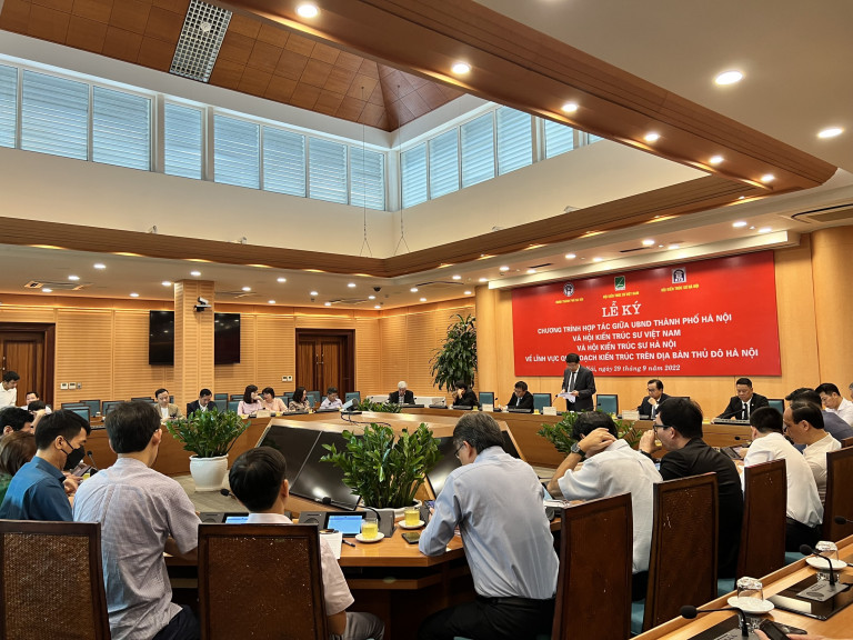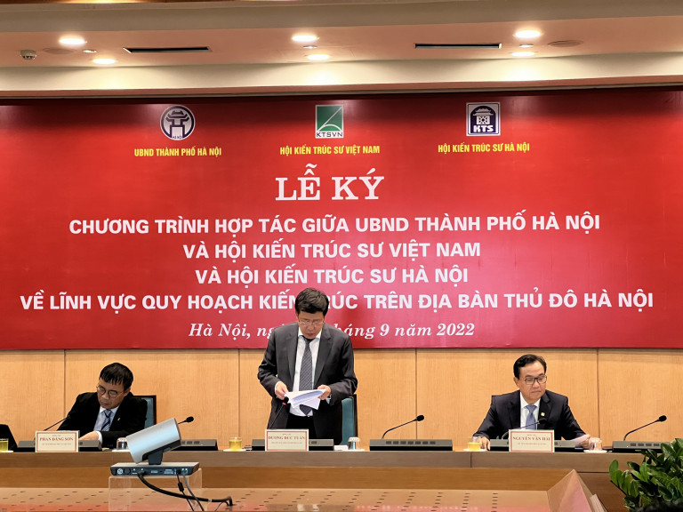 Tại buổi làm việc, Ông Dương Đức Tuấn – Phó Chủ tịch UBND TP Hà Nội cho biết mục đích ký kết hợp tác lần này, nhằm khai thác tốt nhất nguồn lực trí tuệ của đội ngũ chuyên gia, nhà khoa học, nhà quản lý … nhằm nâng cao chất lượng quy hoạch – kiến trúc trên địa bàn Thủ đô, đảm bảo kế thừa truyền thống, thích ứng với nền kinh tế và xu hướng phát triển trong tương lai theo hướng bền vững. Đồng thời, đây cũng là dịp để tăng cường sự hợp tác giữa UBND TP Hà Nội và Hội KTS Việt Nam, Hội KTS Hà Nội trong công tác nghiên cứu khoa học, tư vấn, thẩm định, phản biện trong lĩnh vực quy hoạch – kiến trúc trong giai đoạn 2022-2026 và định hướng trong thời gian tiếp theo.