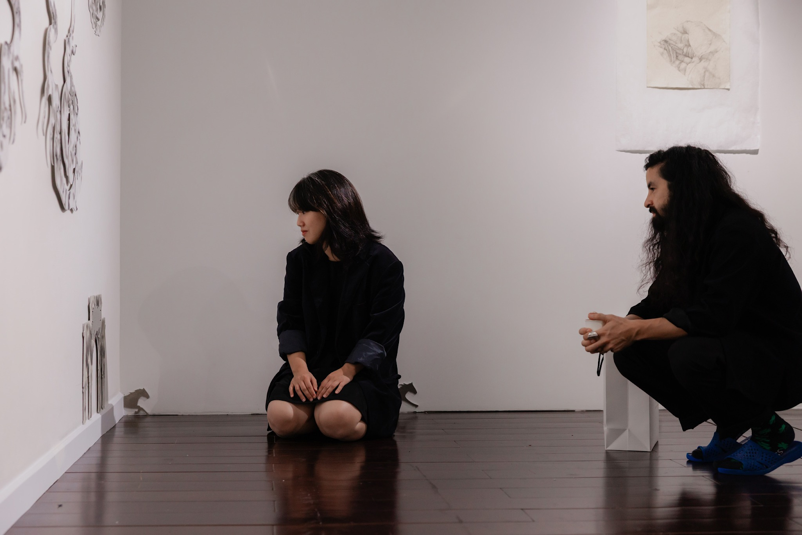 Hai nghệ sĩ trong không gian trưng bày tại VAC. (Ảnh: BTC)