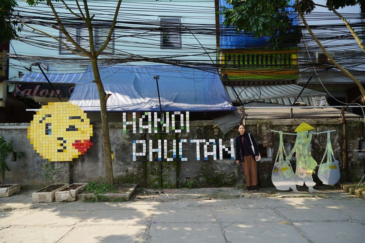 3. Trên xu hướng đó, Quận Hoàn Kiếm năm 2019 tiếp tục đề xuất với nhóm nghệ sỹ tình nguyện thực hiện Dự án Nghệ thuật công cộng Phúc Tân nhằm cải tạo và đánh thức không gian của khu vực bờ ven sông Hồng khu vực phường Phúc Tân. Tiếp tục với vai trò giám tuyển và nghệ sỹ trực tiếp tham gia, tôi đã mời thêm 15 nghệ sỹ, hội tụ khá đầy đủ các nghệ sỹ nổi bật về thực hành nghệ thuật đương đại từ Huế, Sài gòn, Hà Nội và 2 nghệ sỹ nước ngoài sinh sống ở Hà Nội nhiều năm. Đặc điểm của dự án nghệ thuật công cộng là không có dự án nào giống nhau, tuỳ thuộc vào tính chất địa hình và cộng đồng cư dân sống chung quanh khu vực đó. Khu xóm bờ sông Phúc Tân là một khu vực hết sức phức tạp và ngổn ngang, cả từ địa hình tới cộng đồng cư dân khu biệt. Nhưng chính sự thô ráp xù xì khá nguyên sơ gần gũi với thiên nhiên nơi bãi bồi sông Hồng cùng với cây cầu Long Biên lịch sử đã cuốn hút và thách thức chúng tôi muốn thực hiện 1 dự án nghệ thuật công cộng tại đây. Với một khu vực vốn bị coi là phía sau của TP, vệ sinh môi trường và cộng đồng cư dân khá thiệt thòi, là những vấn đề chúng tôi đặt ra cần lưu tâm đặc biệt trong dự án lần này. Ngay sau đó, trong thiết kế tổng thể dự án chúng tôi đã quyết định đưa yếu tố “tái chế” và yếu tố “cộng đồng” trở thành một đặc điểm mấu chốt của dự án. Muốn kêu gọi sự nhận thức và chung tay của cộng đồng nơi đây, chúng tôi đã quyết định tiến hành dự án theo cách “từ dưới đi lên”. Sẽ chỉ tiến hành thi công và làm tác phẩm khi có được sự chia sẻ và cảm nhận đầy đủ từ phía người dân và chính quyền địa phương. Với cách tiếp cận đó, chúng tôi đã tiến hành những buổi chia sẻ và giải thích ý nghĩa tổng thể cũng như từng tác phẩm của từng nghệ sỹ tới người dân ở đây. Sự cởi mở và chân thành của chúng tôi đã được đáp lại bằng sự hồ hởi và nhất trí cao của cộng đồng, cam kết hỗ trợ chung tay thu gom phế thải và bảo vệ trông coi tác phẩm sau khi dự án hoàn thành. Một dự án nghệ thuật công cộng giờ đã được mở rộng thêm ý nghĩa của một dự án cộng đồng, khi người dân được cảm thấy sự đóng góp và cảm nhận được lợi ích từ nó.