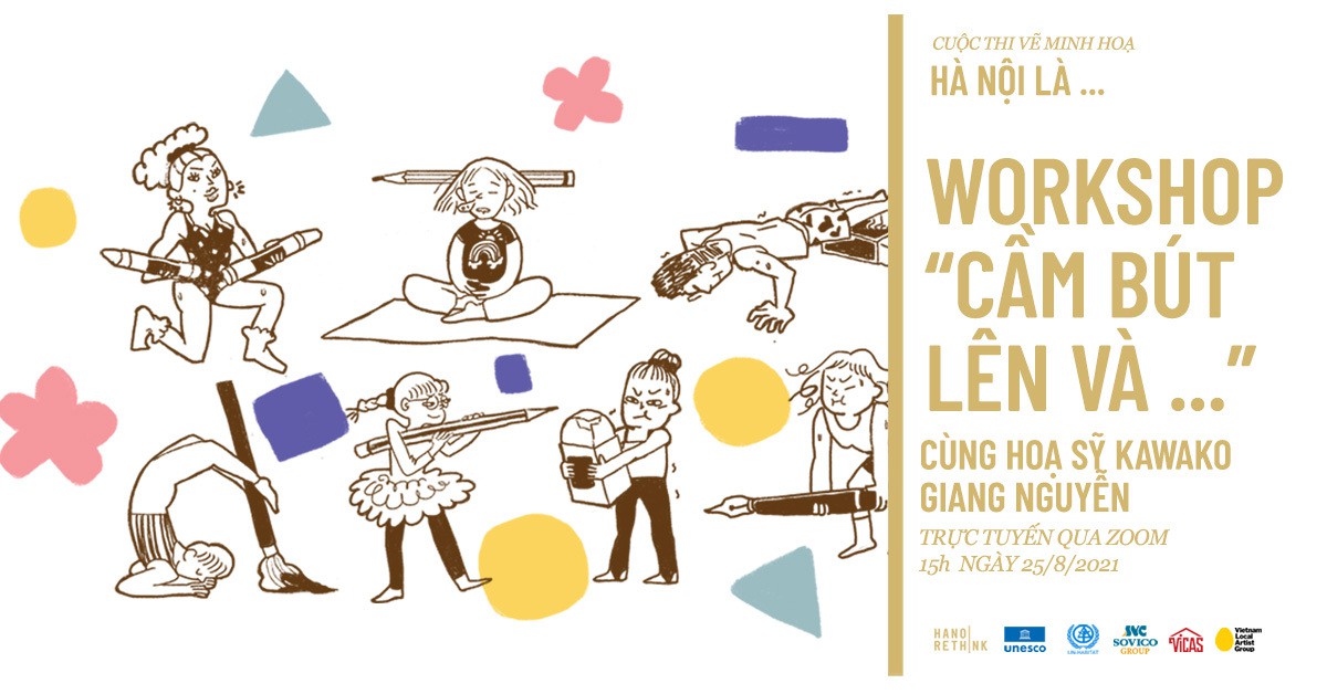 Với mục đích kết nối cộng đồng trong mùa dịch thông qua việc cầm bút, workshop ”Cầm bút lên và…” mời bạn cùng tập thể dục tay với các hoạt động vẽ thoải mái, vui vẻ, tương tác cao. Workshop dành cho mọi lứa tuổi, ngành nghề và trình độ vẽ. Workshop ”Cầm bút lên và…” nằm trong khuôn khổ cuộc thi vẽ minh họa ”Hà Nội là…” tổ chức bởi UNESCO, UN-Habitat, và Viện Văn hóa Nghệ thuật quốc gia Việt Nam (VICAS) với sự đồng hành của nhóm Vietnam Local Artist Group (VLAG).
