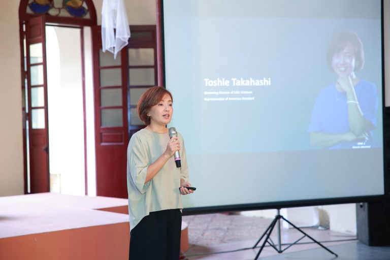 Bà Toshie Takahashi – Đại diện Thương hiệu American Standard, Giám đốc Marketing Cấp cao LIXIL Việt Nam với tư cách diễn giả đã đem tới toạ đàm bài thuyết trình chủ đề: “Kiến tạo không gian – Thay đổi cuộc sống” mang tới câu chuyện thú vị về hành trình hiện thực hóa không gian sống tốt đẹp hơn cho mọi người, ở mọi nơi của LIXIL.