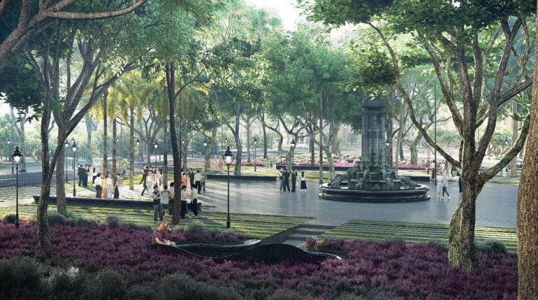 Vườn hoa nằm giữa quần thể kiến trúc điển hình, không gian điểm nhấn mang theo giá trị không chỉ về mặt lịch sử, văn hóa mà mang tính biểu tượng và tinh thần thành phố. Do đó, thách thức đặt ra cho các KTS thiết kế bắt buộc phải tạo được sự kết nối giữa không gian xanh nội đô với kiến trúc kế thừa từ khu phố tây thời Pháp. Đưa hệ thống cây xanh đô thị vào công trình nhằm kế thừa ý tưởng ban đầu quy hoạch thành phố vườn, đồng thời đảm bảo tính bền vững của di sản cây xanh phong phú trong khu vực này của Hà Nội, duy trì các chức năng sinh thái do cây xanh mang lại về lâu dài.