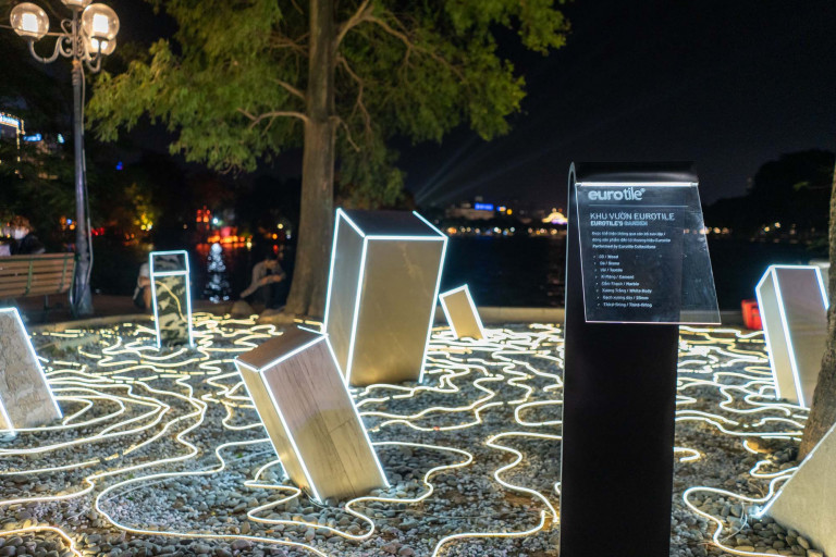 Đặt tại không gian mở ngay trung tâm thủ đô, không gian triển lãm là nơi kết nối những ai đến với Lễ hội Thiết kế Sáng tạo Hà Nội 2022, nơi phát triển quan hệ đối tác, hỗ trợ sự sáng tạo, giao lưu giữa các kiến trúc sư, nhà thiết kế bởi điểm nhấn độc đáo – Con đường Eurotile.