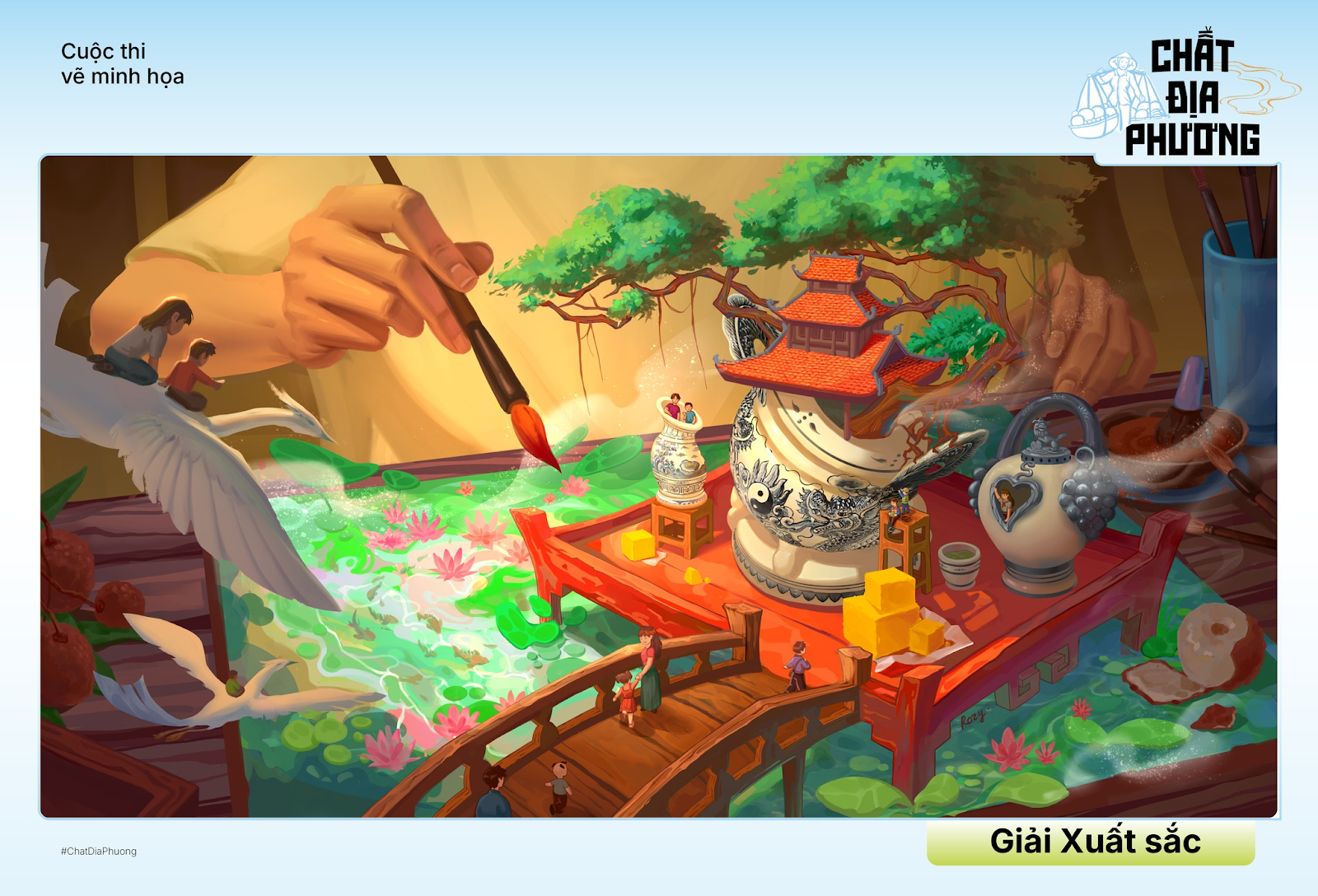 Ngày 24/6/2025 vừa qua, sau hơn một tháng phát động, cuộc thi vẽ tranh minh hoạ “Chất địa phương” đã công bố hơn 30 tác phẩm đoạt giải. Do UNESCO, Sở Văn hoá – Thể thao Hà Nội, và Vietnam Local Artist Group (VLAG) đồng tổ chức với sự hỗ trợ của Tập đoàn SOVICO, sự góp mặt của hơn 400 hoạ sĩ – 550 tác phẩm đã biến cuộc thi “Chất địa phương” trở thành miền kí ức rộng lớn, nơi những câu chuyện văn hoá từ nhiều vùng đất khác nhau được tái hiện sinh động dưới góc nhìn hội hoạ.