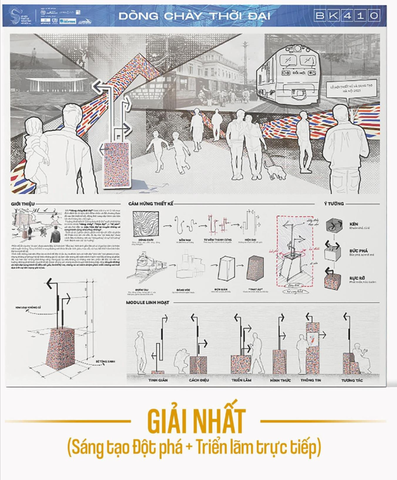 Theo đó, phương án đoạt giải Nhất thuộc về tác phẩm “Dòng chảy sáng tạo” của nhóm tác giả Đại học Bách khoa thành phố Hồ Chí Minh; giải Nhì thuộc về phương án “Ray tàu ánh sáng” của nhóm tác giả Trường Đại học Nam Cần Thơ; giải Ba thuộc về phương án “A Glimpse Of Time” của nhóm tác giả Trường Đại học Xây dựng Hà Nội.