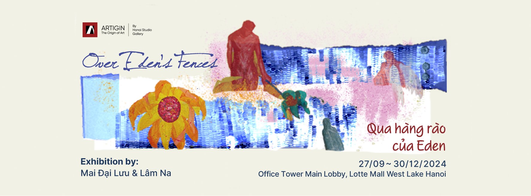 Bộ sưu tập “Qua Hàng Rào của Eden” của Hanoi Studio Gallery tại không gian Artigin tại Lotte Mall West Lake mang đến một không gian nghệ thuật đầy suy tư và chiêm nghiệm. Tại đây, công chúng yêu nghệ thuật sẽ được khám phá những tác phẩm đan xen giữa thực và mộng, nơi những bức tranh đặt ra câu hỏi về ranh giới giữa “bên trong” và “bên ngoài”, giữa “hỉ nộ ái ố” và sự tĩnh tại.