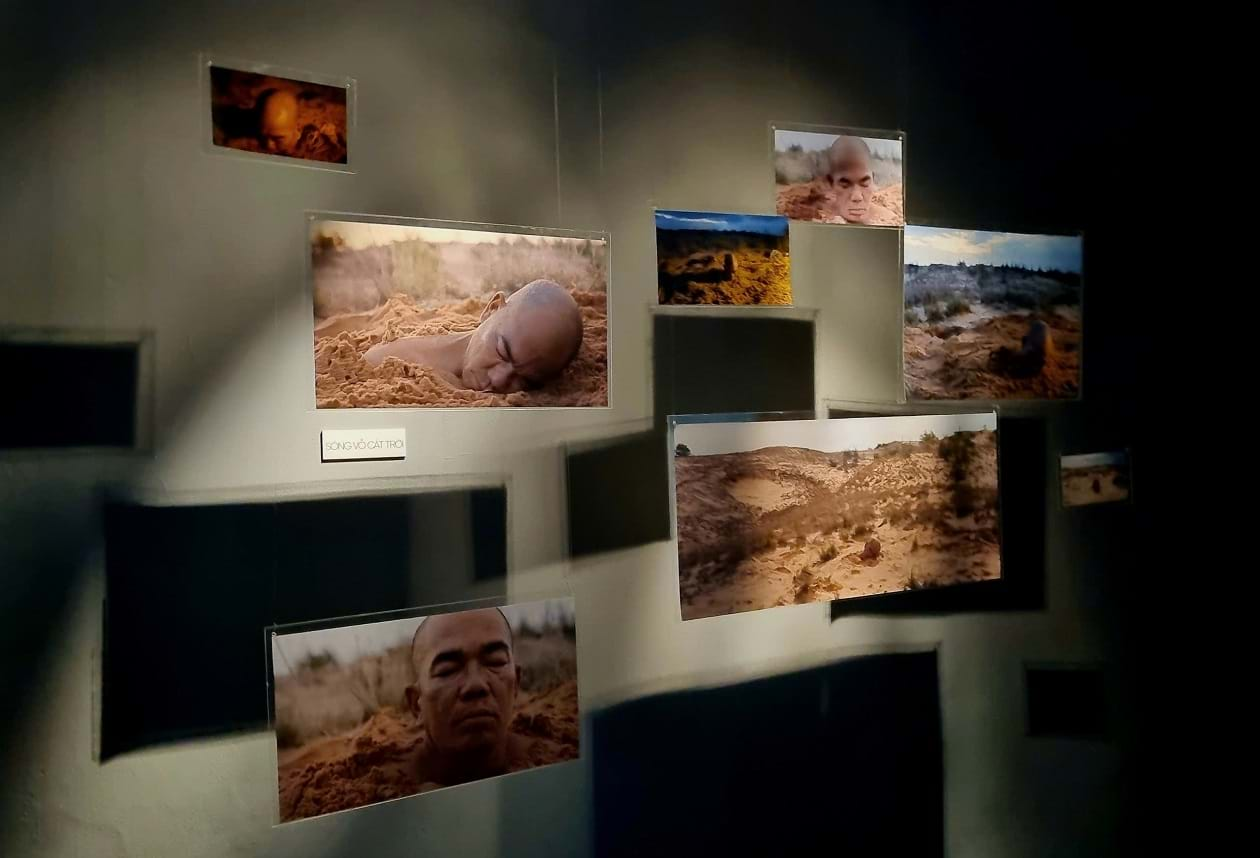 That experience was not only documented and re-presented through two films, but also spread, diffused and reflected in the exhibition space – Through photographic works and a portrait installation made from crushed sand and pieces of mirror. There, the disturbance between seeing and being seen, between the portrait of another person and one’s own image, between the feeling of observing and the feeling of being observed, creates a vague intersection: Where the seemingly eternally silent space suddenly lures the viewer with an invitation to engage, confront and collide: Like waves hitting the shore and then rolling away, is it accretion or is it being washed away, is it full or empty? – Those doubts about existence and transformation are the echoes of each person wondering and searching for their own answers. As for Phan Quang, he has realized for himself:“At the bottom of suffering is the seed of happiness.”
