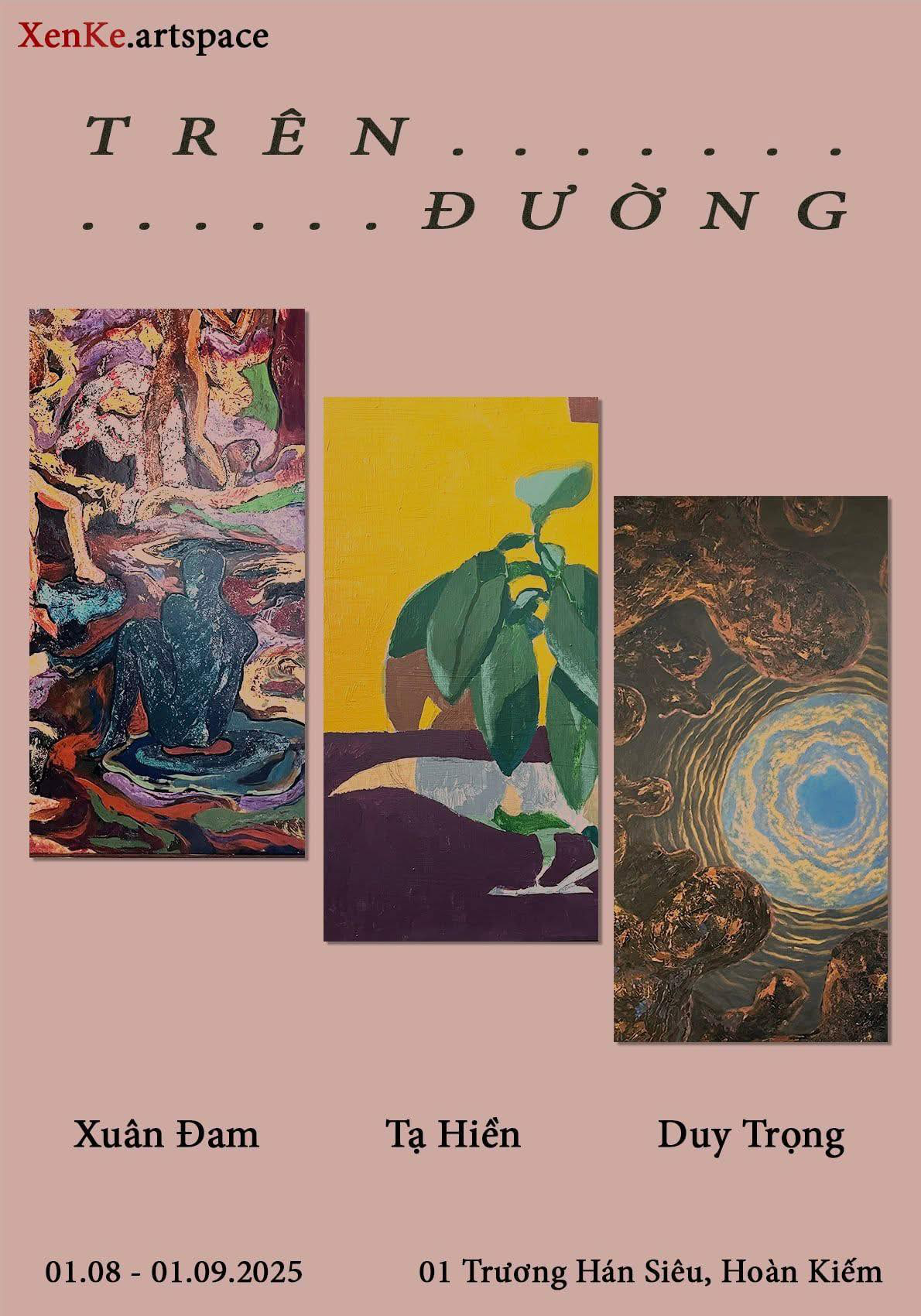 From August 1 to September 1, 2025, at Xen Ke Art Space (No. 1 Truong Han Sieu, Hoan Kiem District, Hanoi), art lovers had the opportunity to experience the Open Studio program “On the Road”.Different from a normal exhibition, “Open Studio” is an art form in which the exhibition space is transformed into an open studio. Therefore, with the exhibition “On the Road”, viewers can feel the creative flow that is continuing in 30 works by three artists Xuan Dam, Ta Hien and Duy Trong