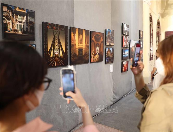 Khách tham quan triển lãm “Hà Nội – Một thành phố trong nhiếp ảnh” tại Trung tâm Văn hóa Nghệ thuật 22 Hàng Buồm. Ảnh: Thanh Tùng/TTXVN