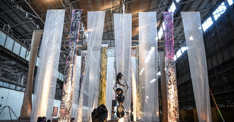 Triển lãm sắp đặt nghệ thuật “Tiếng gọi” của họa sĩ Thu Trần với những dải tranh vẽ dài từ 40-60m được treo trên trần phân xưởng 3B1. Từng triển lãm được xây dựng hoành tráng, chỉn chu, tỉ mẩn đến từng chi tiết. Tất cả tạo nên không gian khổng lồ giữ trọn sự chảy trôi của văn hoá di sản, của sự đan xen giữa cũ và mới, của ký ức và tương lai.
