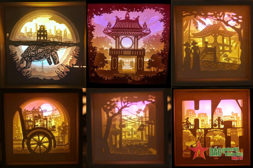 Những tác phẩm đèn giấy nghệ thuật khắc họa hình ảnh Hà Nội vô cùng sống động. Ảnh: Báo Quân đội nhân dân