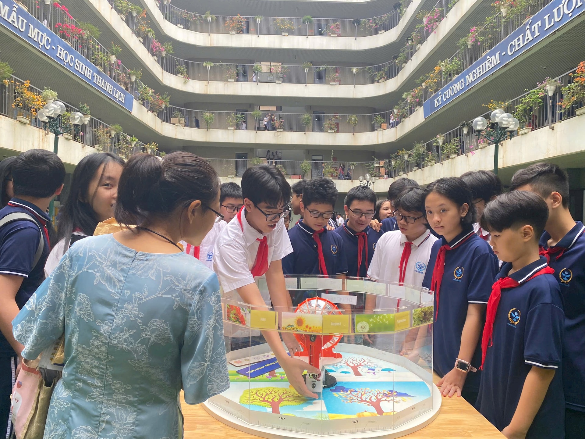 Với mô hình này, chúng em có thể quan sát và hiểu rõ hơn về sự khác biệt giữa ngày và đêm, sự thay đổi của các mùa trong năm, cũng như các hiện tượng nhật thực, nguyệt thực. Đặc biệt, mô hình này có thể dễ dàng sử dụng trong các buổi học tại trường hoặc tại nhà, giúp các bạn dễ dàng tiếp cận và học tập”.