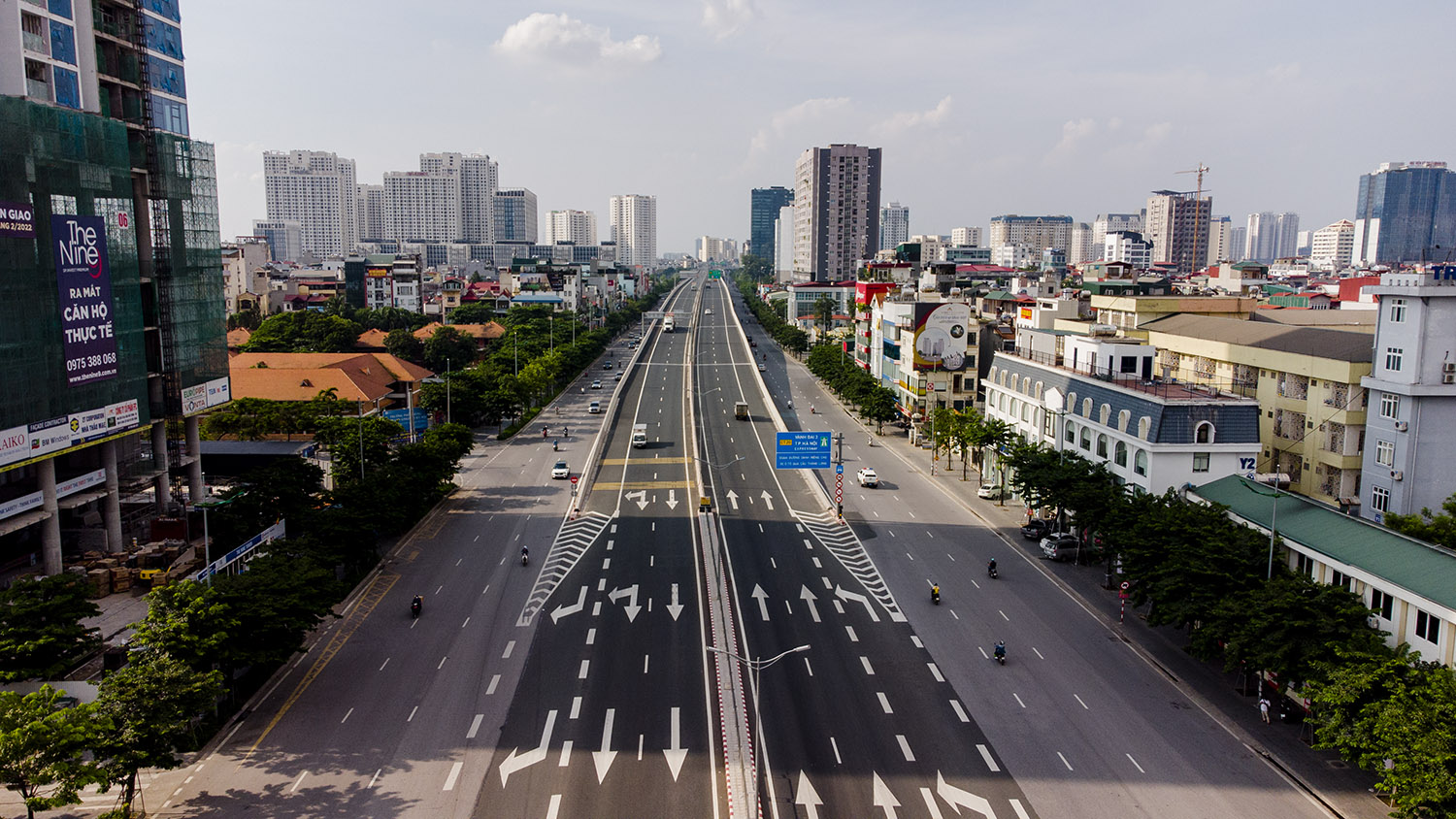 Nhìn từ trên cao đường phố Hà Nội trong buổi sáng ngày thứ 8 giãn cách xã hội