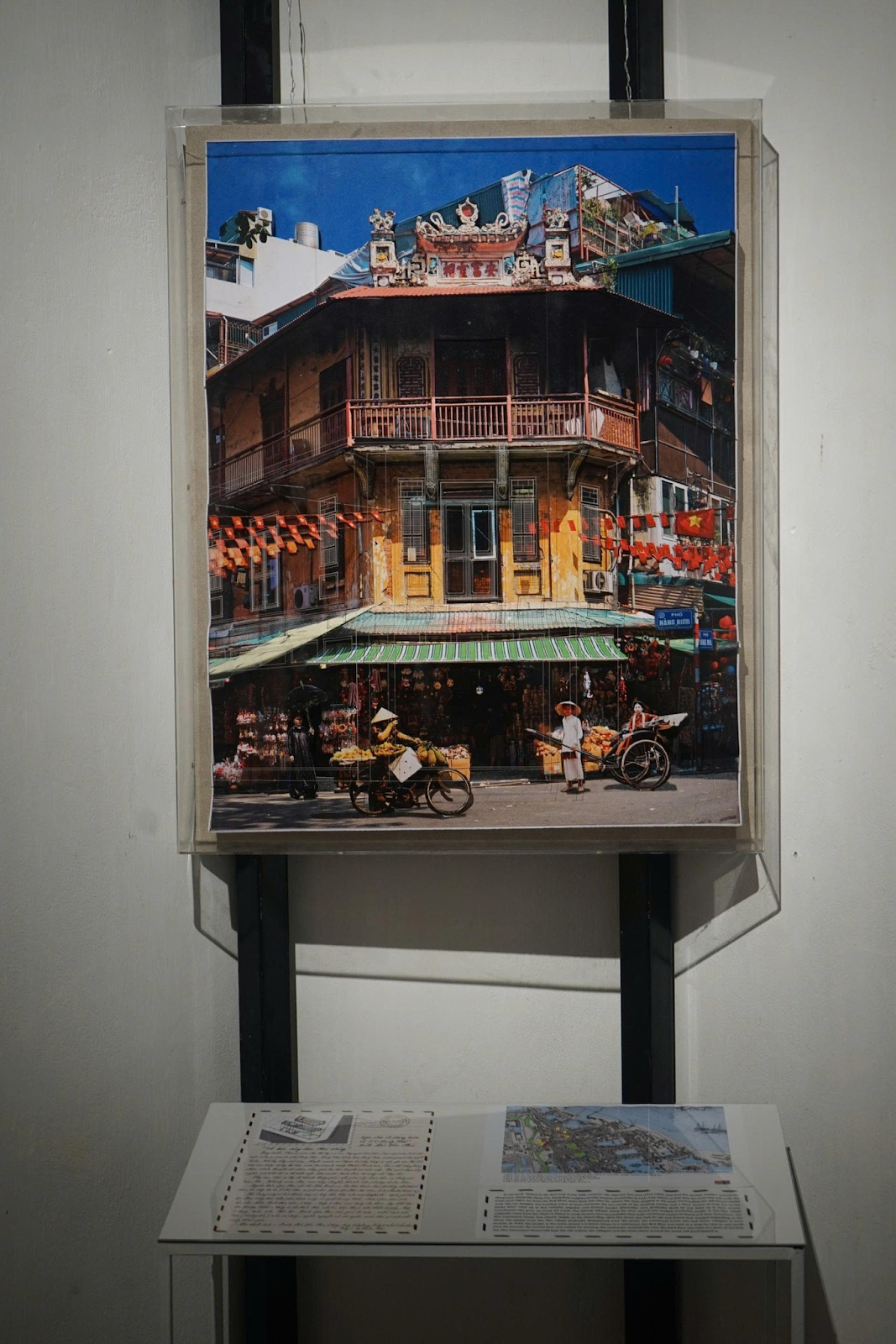 Nghệ sĩ chia sẻ: “Tôi muốn người xem nhận ra rằng ký ức đô thị không chỉ nằm trong hình ảnh hay bản vẽ, mà sống động ngay trong không gian xung quanh, trong từng ô cửa, mái ngói, ngã rẽ.”