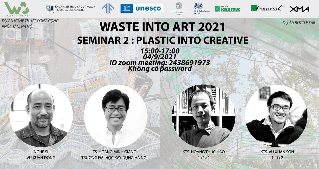 Sự kiện nằm trong khuôn khổ cuộc thi “WASTE INTO ART 2021: “WIA 2021 – PLASTIC INTO CREATIVE – BIẾN RÁC THẢI NHỰA THÀNH SÁNG TẠO” do Khoa Kiến trúc & Quy hoạch, trường Đại học Xây dựng, Quỹ AIF – Quỹ đổi mới và sáng tạo Kiến trúc, UNESCO tổ chức, cùng sự đồng hành của Đại sứ quán Anh, Đại sứ quán Italia, công ty XMA và đơn vị truyền thông Tạp chí Kiến trúc, Kiến Việt