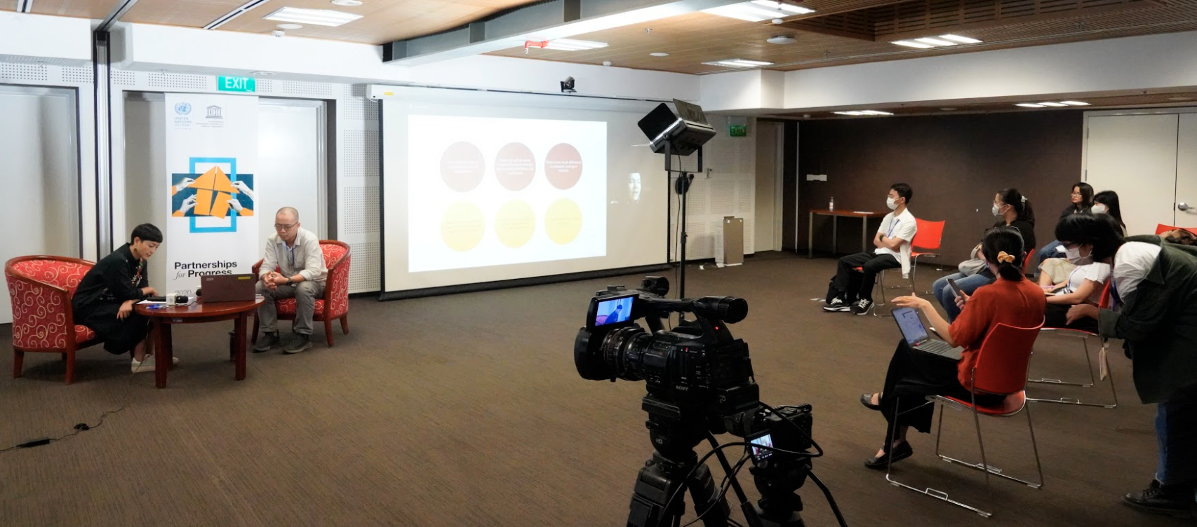 Anh Two Nguyễn đang chia sẻ về các dự án mà Hands Collective đã tham gia