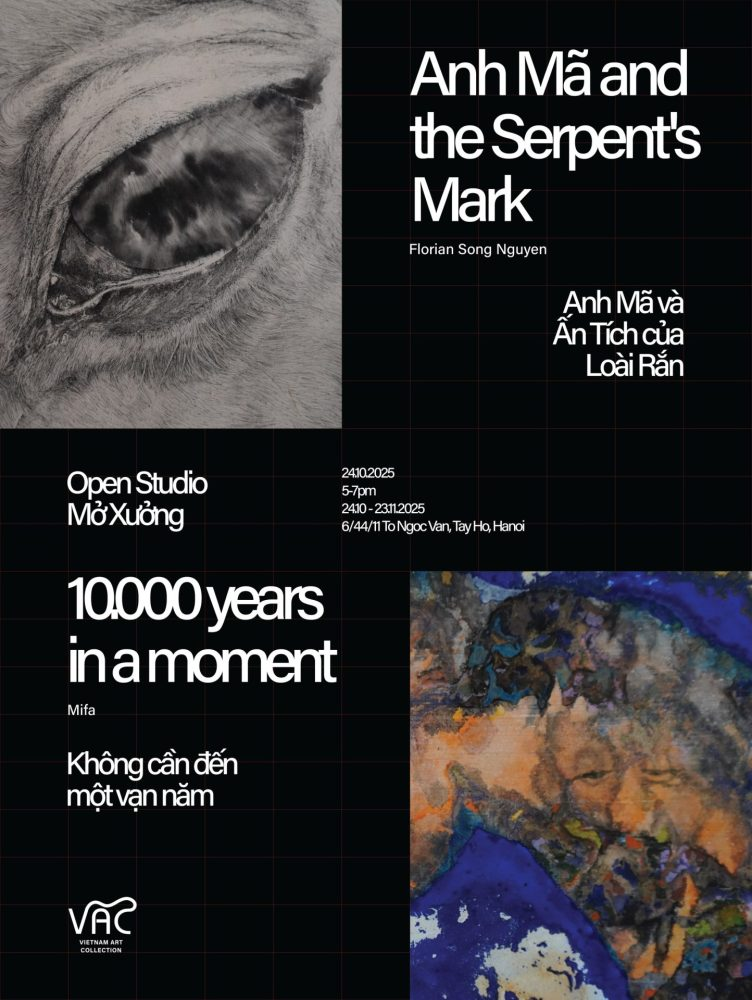 Vietnam Art Collection (VAC) vừa ra mắt Mở Xưởng mùa Thu 2025, giới thiệu hai dự án mới được phát triển trong thời gian lưu trú của hai nghệ sĩ Florian Sông Nguyễn và Mifa tại VAC Hà Nội. Sự kiện mở xưởng mang đến cho công chúng cơ hội hiếm hoi để bước vào không gian sáng tác, quan sát trực tiếp cách ý niệm hình thành, chuyển hóa và trở thành tác phẩm hoàn chỉnh.